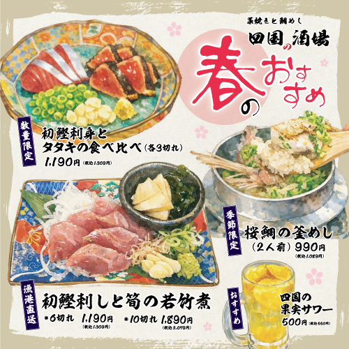 藁焼きと鯛めし 四国の酒場 本町店営業時間外 - 営業開始 金曜日 11:30